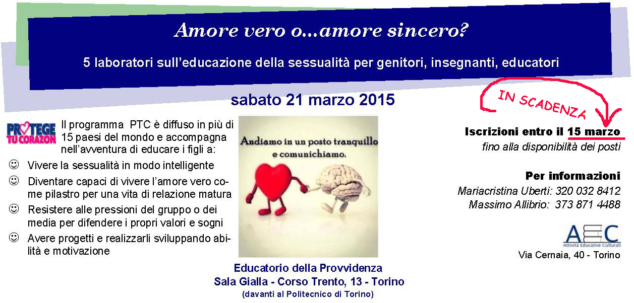 Sabato 21 marzo 2015 ; sede: Educatorio della Provvidenza (sala gialla) C.so Trento 13 – To